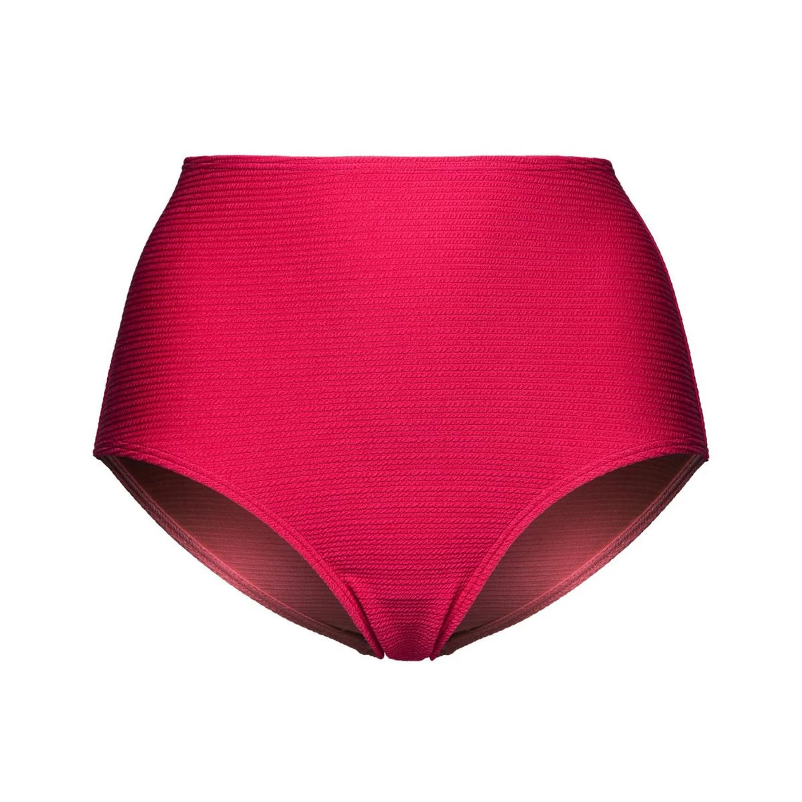 On apprécie la coupe haute sculptante de ce Bas de bain taille haute rose de la collection Glamourous Textured de chez Sans Complexe.