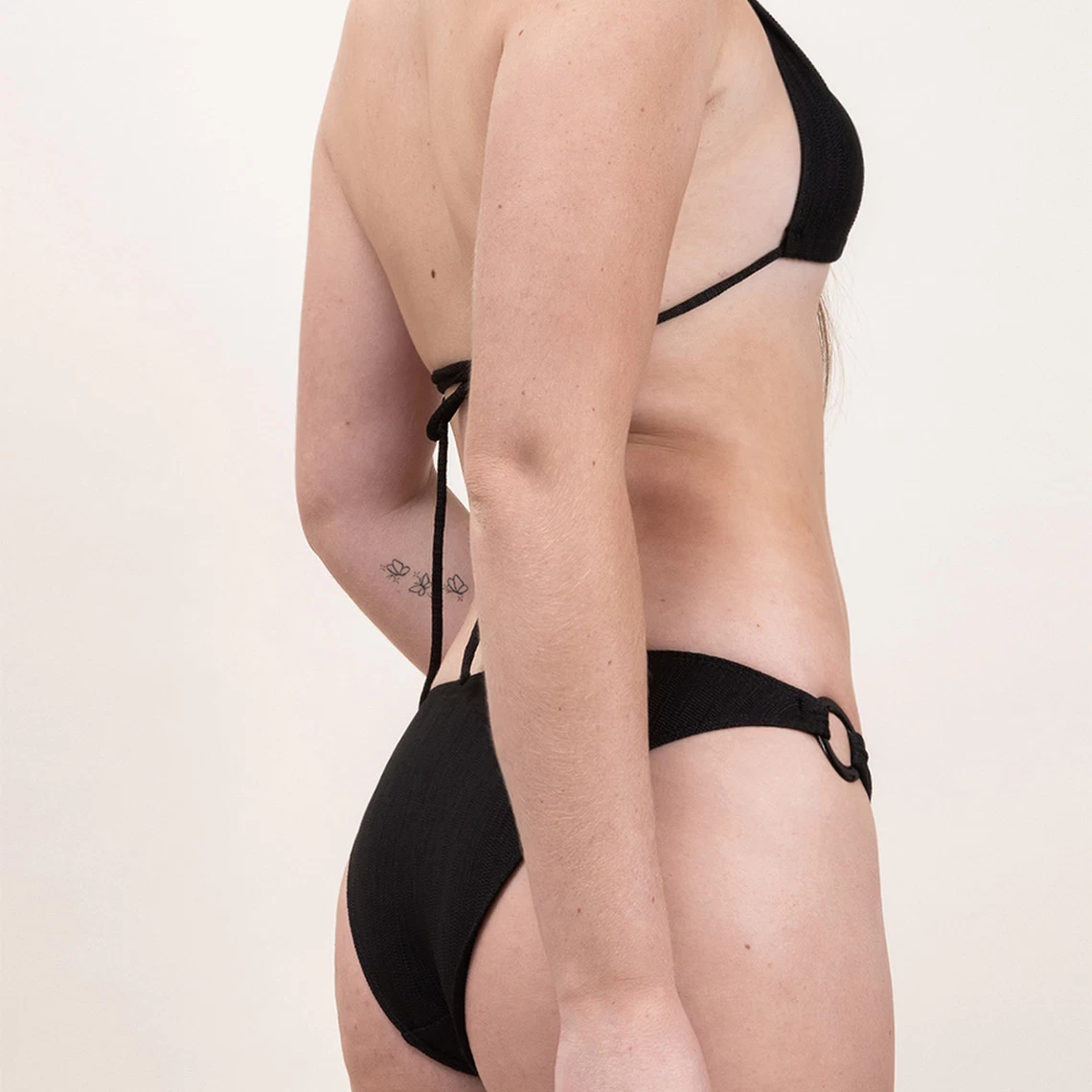 Pour complĂ©ter votre bikini, voici la Culotte de bain avec anneaux – Noire de la marque Pool Day.