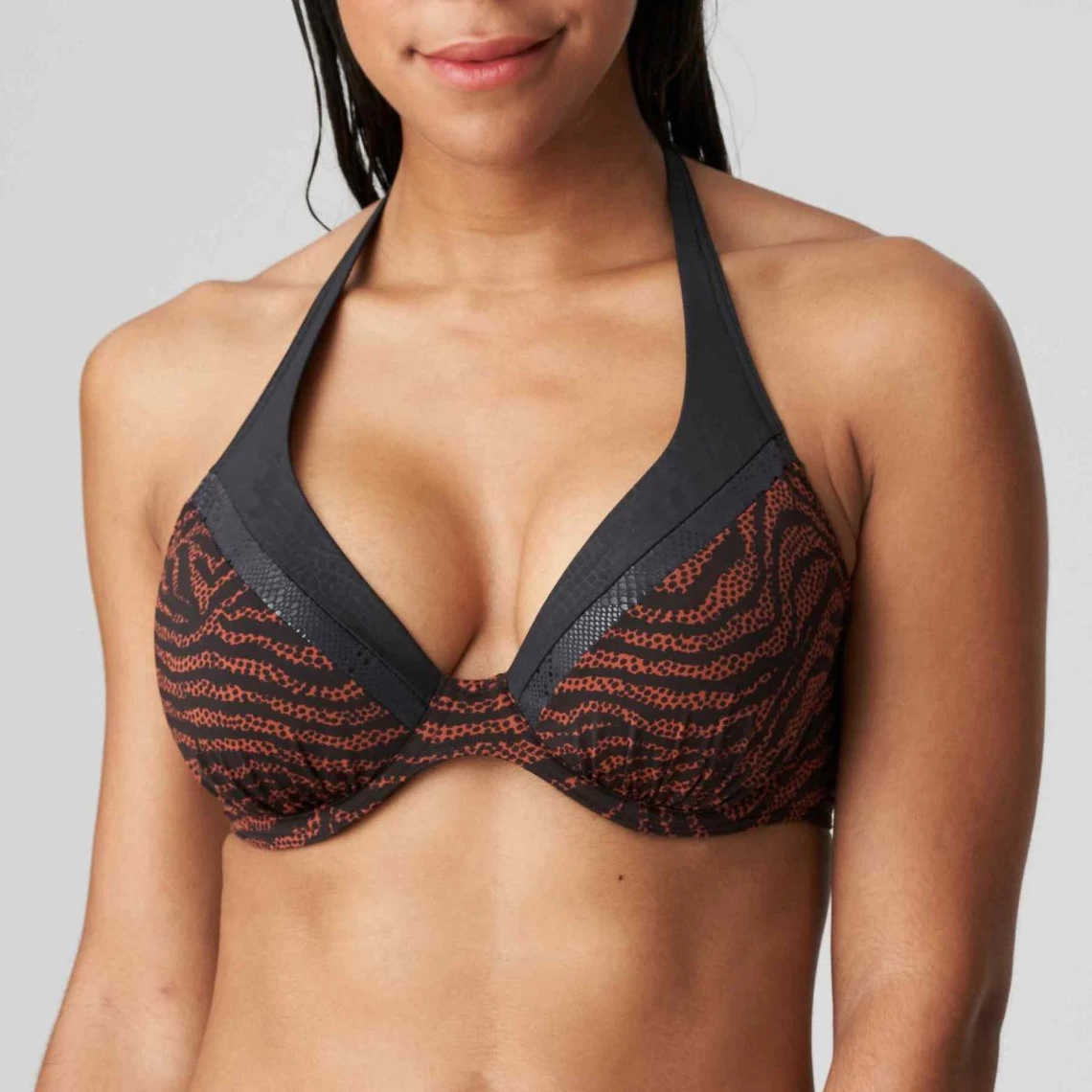 On aime le style original de ce haut de maillot de bain plongeant armature noir de Prima Donna Maillot, collection issambres.