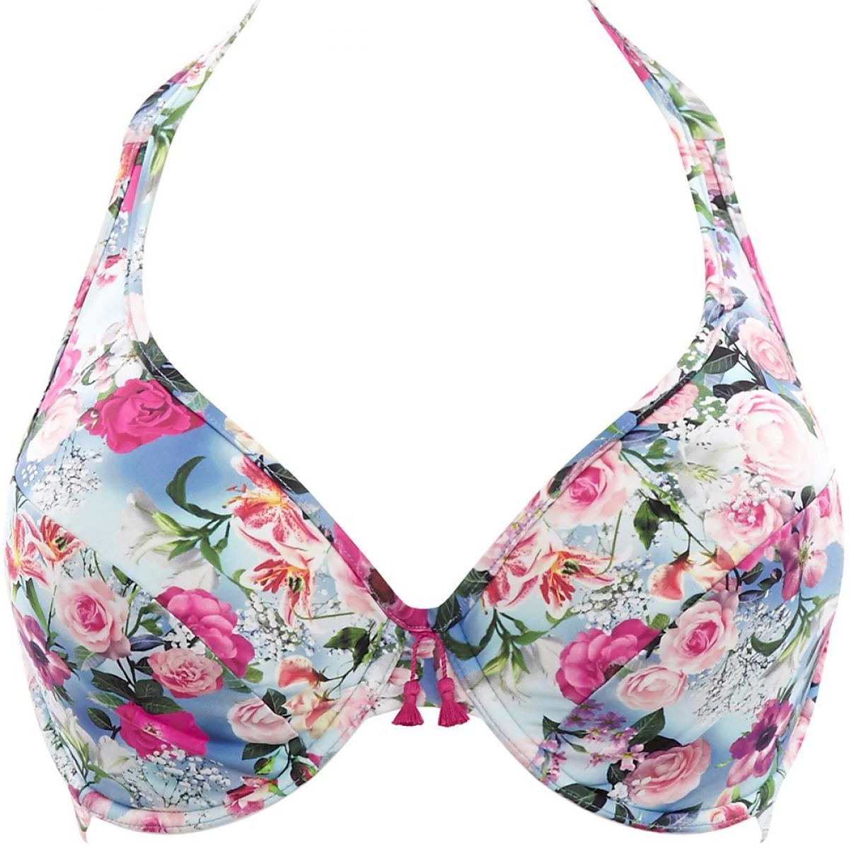 Craquez pour ce Haut de maillot de bain tour de cou blue floral Panache de la collection ALANIS. Tendance et confortable, il allie une coupe enveloppante à des imprimés floraux au ton rafraichissant.