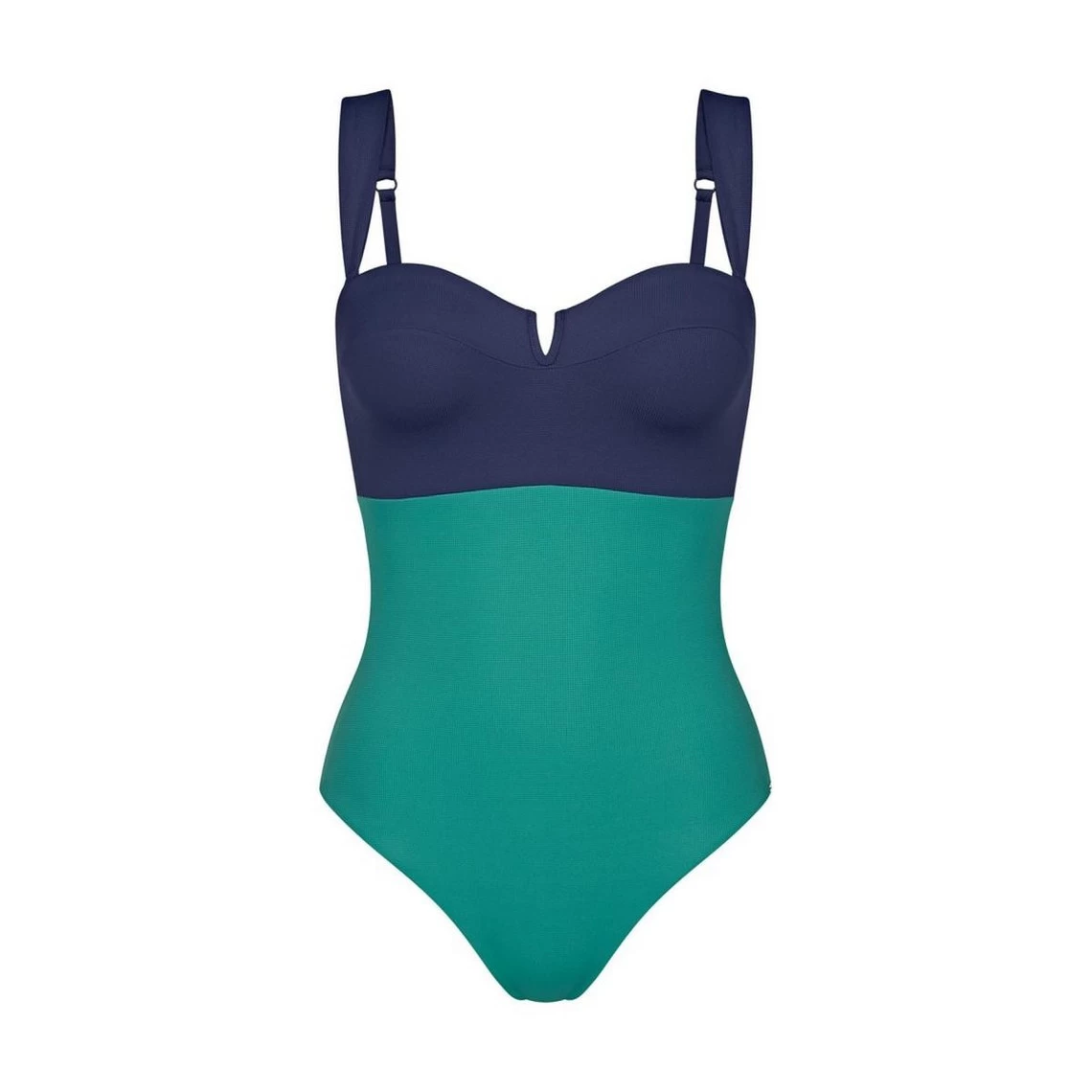 Ce Maillot De Bain 1 Pièce Avec Bretelles Détachables Bleu Triumph est un parfait allié pour sculpter magnifiquement la silhouette.