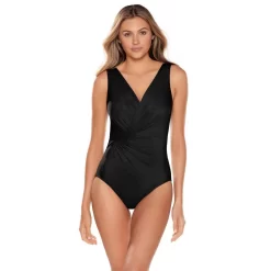 Sentez-vous belle et confiante au bord de l’eau grâce à ce Maillot de bain 1 pièce cache-cœur armatures cachées Noir Miraclesuit de la collection Twisted Sisters.