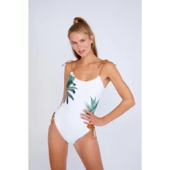 On craque pour le design sexy et raffiné de ce Maillot de bain une pièce blanc Banana Moon de la collection Palmspr.