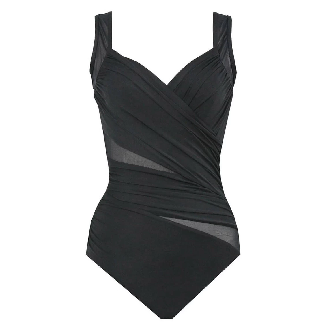 Maillot de bain une pièce gainant noir de la marque Miraclesuit, reconnue pour ses maillots de bain sculptants