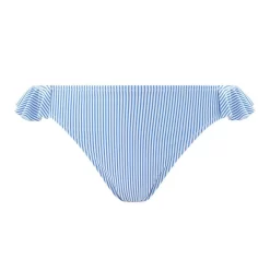 Bas de bikini en microfibre. Imprimé fines rayures. Médaillon BB. Taille élastiquée. Volants sur les hanches. A associer avec le tankini AZUR ou le haut triangle AZUR. Disponible du 36 au 46 Matière principale : 80% Polyamide, 20% Elasthanne – Doublure : 100% Polyester