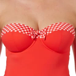 N’hĂ©sitez plus et procurez-vous ce tankini bandeau Ă armatures poppy check rouge de Freya Maillots.