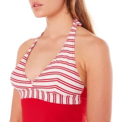 Craquez pour l’effet marinière de ce Tankini de bain – rouge Brigitte Bardot.