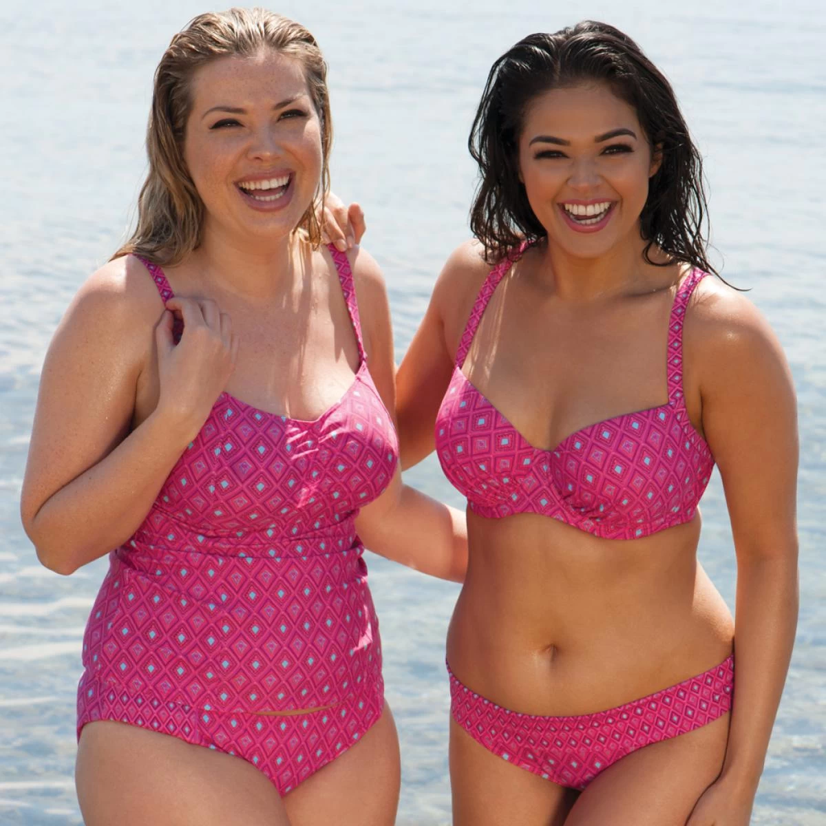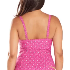 Ce tankini de bain Curvy Kate Maillot est composĂ© d’une maille d’un rose Ă©clatant imprimĂ© de petits losanges dans les nuances apportant un aspect graphique au top des tendances.Â