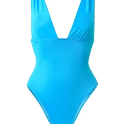 Réalisé dans une coupe confortable et élégante, Une pièce gainante – Bleue de la marque Pool Day possède une profonde décolletée sur le devant.