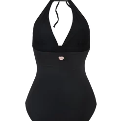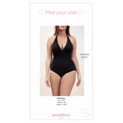 Elle est proposée avec une coupe unie du haut vers le bas. Une nuance de noir différencie la partie haute et la partie basse. Son haut est caractérisé par une coupe décolletée profonde, laissant entrevoir les seins sur le milieu. Ses bretelles sont attachées au cou, afin de permettre un surplus de confort lors de la nage. Réglable, vous pouvez régler selon votre aisance.